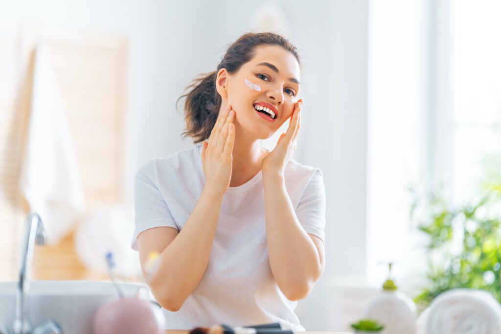 Use a gentle sulfate-free cleanser to remove dirt, makeup, and grime without stripping your skin of natural oils. Cleanse your face twice a day – morning and night – to keep your pores clear.
